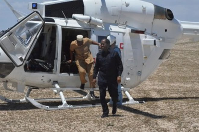 An aircraft carrying the president and several ministers landed safely in Barawe despite a mortar barrage launched by suspected militants. An al-Shabab spokesman said the president had "narrowly escaped."