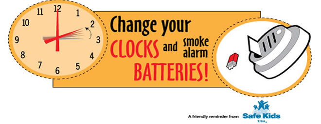 - When you change your clocks, change the batteries in your smoke alarms and carbon monoxide detectors. This can help save lives.