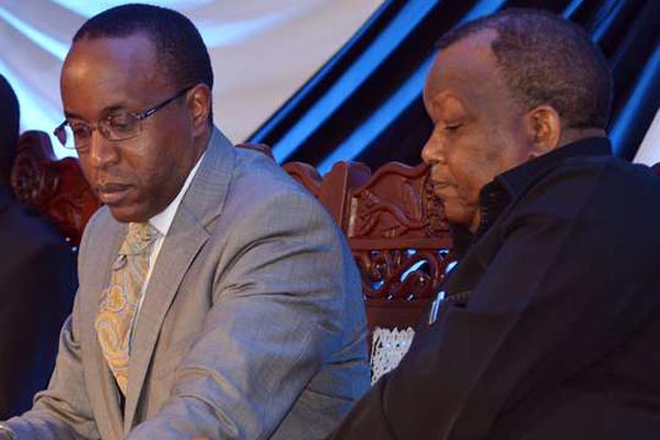 Former Chief of Defence Forces, General Julius Karangi (right) and Solicitor-General Njee Muturi during the Law Society of Kenya conference in Diani on August 13, 2015.