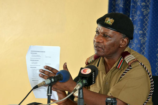 Mombasa County Commissioner Nelson Marwa addressing the press in his office on July 14, 2015. on August 25, 2015, he confirmed that some of the over 200 youth released from prison over their alleged links with Al-Shabaab cannot be traced