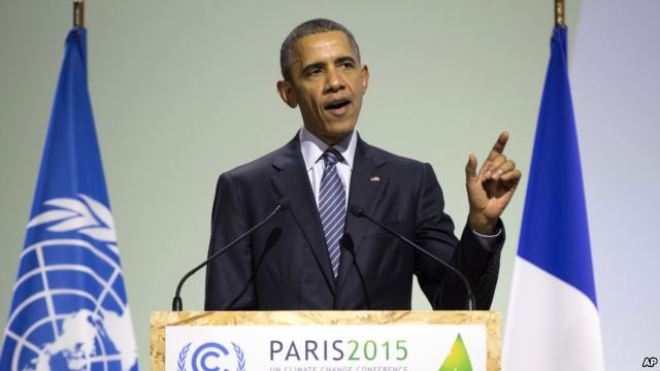President Barack Obama delivers remarks during COP21, United Nations Climate Change Conference, in Le Bourget, outside Paris, on Nov. 30, 2015.