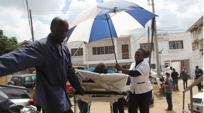 Adjacent to this building is a construction site where workers were evacuating the site. I later saw some of them carrying injured students to safety outside the campus/MIKE KARIUKI
