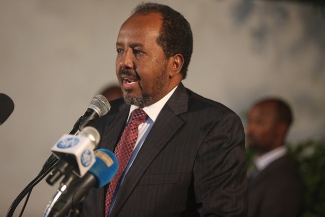 Somali President Hassan Sheikh Mohamud on Thursday lauded leaders from the two warring regional states for signing a peace agreement to end clashes for the control of northern Somali city of Galkayo.The leaders of Galmudug and Puntland administrations, Abdikarim Hussein Guled and Abdiweli Mohamed Ali, respectively signed peace deal on Wednesday after two weeks of clashes between security forces, which left at least 20 dead and several injuries.