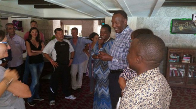 Nkaissery speaks to passengers who were booked into a hotel after the scare. Others were being interrogated/CFM NEWS