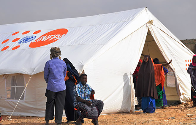 Women queue for health services at a maternity waiting home in Somalia. © UNFPA Somalia/Ruth Solomon