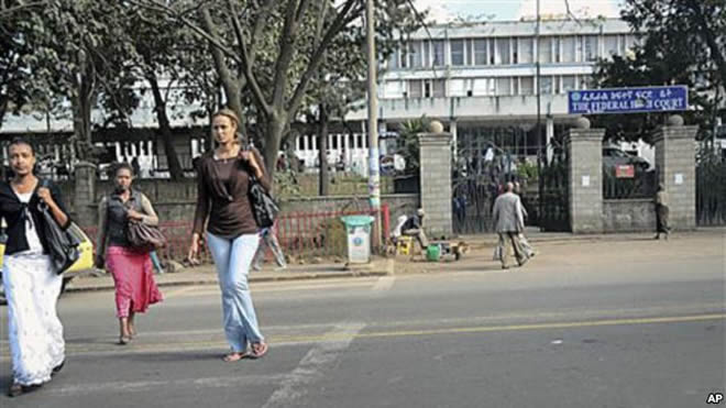 Pedestrians walk past the Federal High Court building in Addis Ababa. (AP file photo)