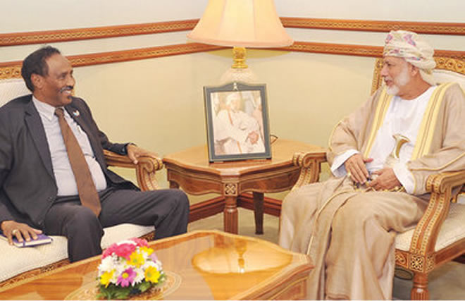 Muscat — Omani Minister Responsible for Foreign Affairs Yusif bin Alawi today received Somali Minister of Foreign Affairs and Investment Abdirahman Duale Beyle, currently on visit to the Sultanate of Oman. The two sides discussed bilateral relations and ways of bolstering joint cooperation, and reviewed the political situation in Somalia. The meeting focused also on the regional and international developments and efforts to achieve peace .