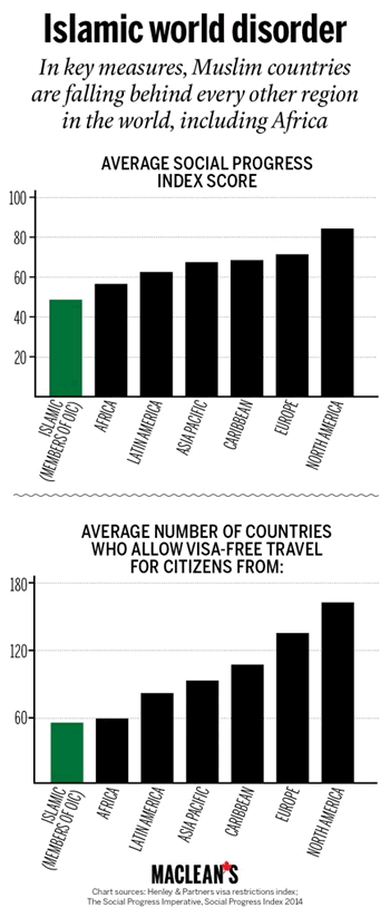 But, while the global community leapt forward, Islamic nations (as defined as members of the Organization of Islamic Co-operation) have progressed at a much slower pace. This is the case across a wide variety of metrics