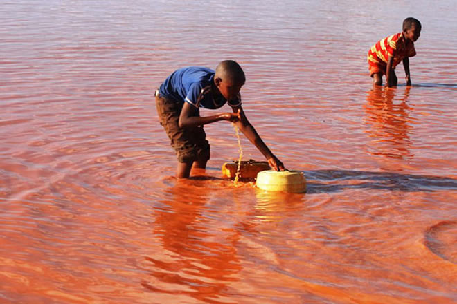 A boy collects water from an earth pan in Banisa Sub-County on May 12, 2015, Mandera County. The government has warned of an impending drought in the county.