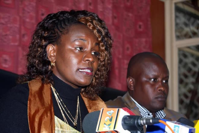 Nyeri County Woman Rep Priscilla Nyokabi and Kieni MP Kanini Kega addressing journalists at Parliament in Nairobi on July 21, 2015.