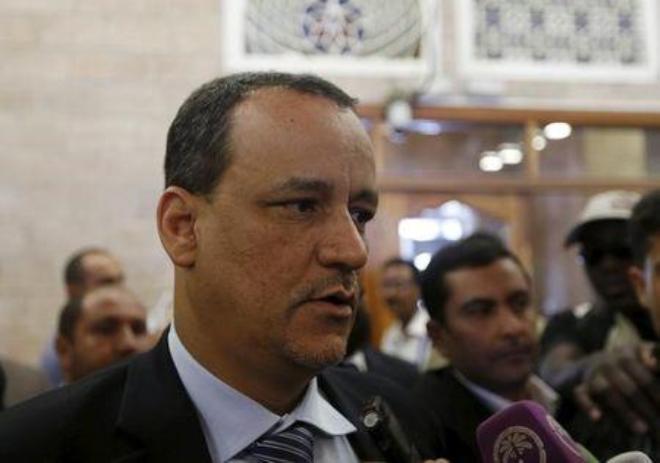 United Nations envoy to Yemen Ismail Ould Cheikh Ahmed talks to reporters upon arrival at the international airport of Sanaa, Yemen May 29, 2015. REUTERS/Khaled Abdullah/Files