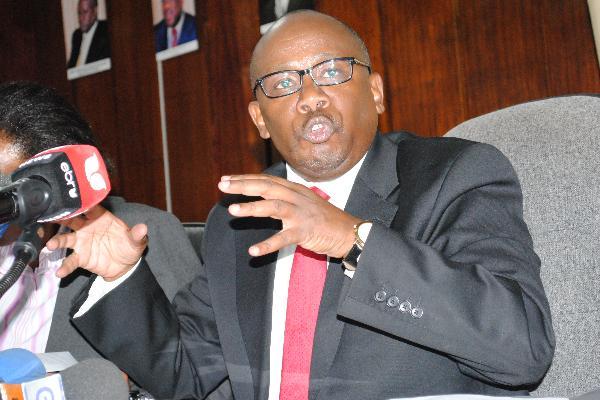 Attorney General Githu Muigai during a press conference at his office in May last year. Kenya and Somalia are disputing their boundaries in the Indian Ocean.