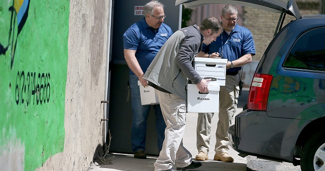 Officials from the DHS and BCA removed boxes and computer equipment from the Salama Child Care Center, Wednesday, May 13, 2015 in Minneapolis, MN. ELIZABETH FLORES – STAR TRIBUNE