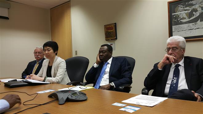 Left: Dr. Olumuyiwa Benard Aliu, the fifth and current President of the Council, Ali A. Jama Jangali, Somali transport minister, Raymond Benjamin, the outgoing secretary general for ICAO and  Dr Fang Liu, the new Secretary General