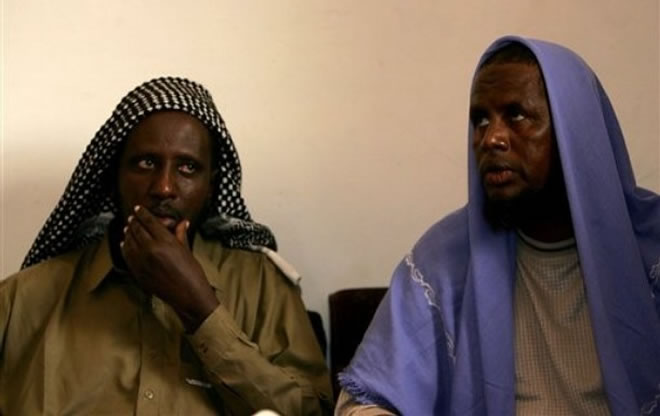 Leaders of the Islamic Court Union. Sheikh Sharif Ahmed (left) and Sheikh Yusuf Indohaadde during a news conference iin June 2006.