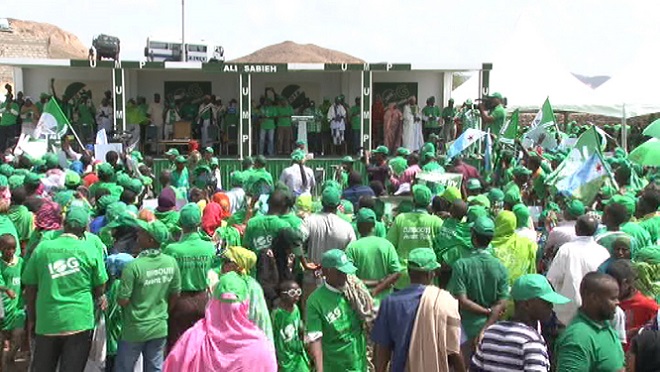 Thousands of Djiboutians, mostly wearing green shirts emblazoned with Mr. Guelleh’s face on the front held their last rally in Ali Sabih, a remote town in Djibouti.