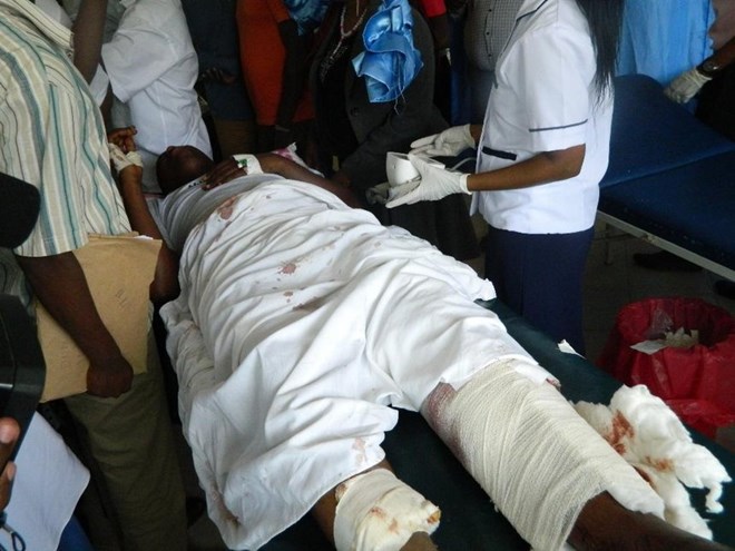 The driver of the vehicle that was hit by an IED in Holugjo last in June at his hospital bed at the Garissa referral hospital.An administration police and NYS officer were on Monday wounded after they accidentally stepped on an Improvised Explosive Device (IED) in Lamu. Photo/file