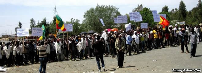 At rallies in the city of Bahir Dar, protesters were seen carrying signs that read "Stop Killing Oromo People" and "Free Bekele Gerba." Gerba is the deputy chairman of the Oromo Federalist Congress, an opposition party whose leaders are currently in prison.