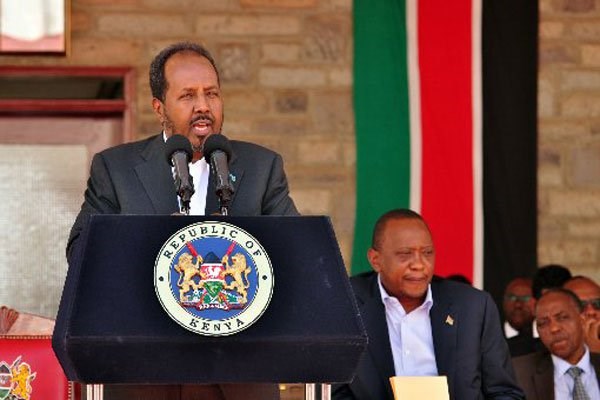 Somali President Hassan Sheikh Mohamud speaks at a past event. Somalia could attain the minimum quota for women in political leadership ahead of Kenya when it heads to the polls next month. PHOTO | SALATON NAJU | NATION MEDIA GROUP