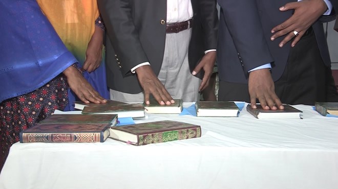 At the tightly secured compound in Mogadishu, 43 MPs of the Upper House and 242 MPs of the Lower House (House of the People), placed their right hands on the Holy Quran in groups of 30 as they took an oath of allegiance.