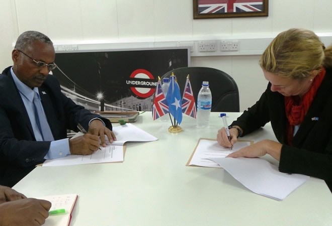Somalia’s defence Minister Gen. Abdiqadir Ali Dini and UK’s Somalia ambassador Hurriet Mathews signed the bilateral deal in Mogadishu Saturday.