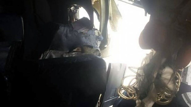 Pictures from the ground showed a hole in one side of the airliner, just above its wing and slightly smaller than one of its doors.
