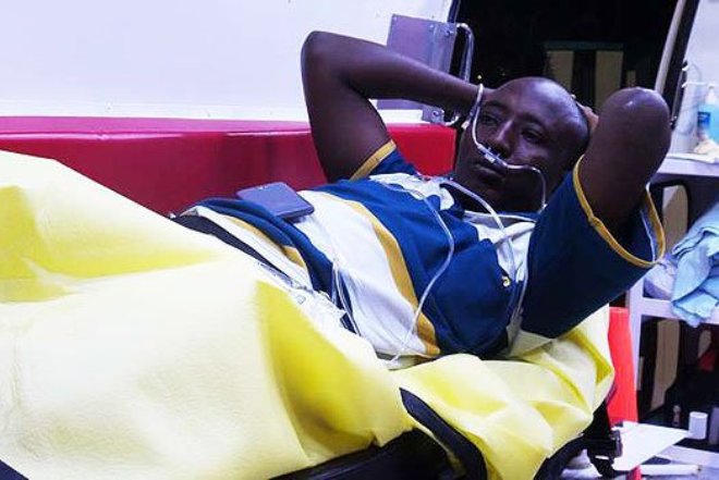 Mr Salah Farah arrives at Kenyatta National Hospital in an ambulance on December 22, 2015. PHOTO | JAMES EKWAM