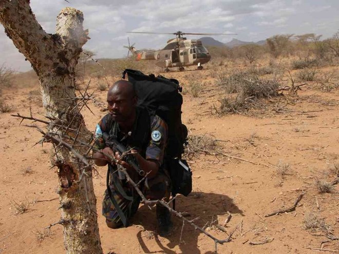 A member of the RDS unit providing cover during a simulated rescue operation for a 'downed' pilot in hostile territory