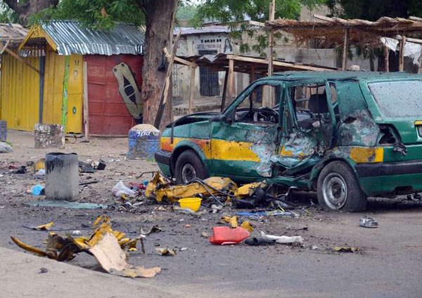 The wreckage of a vehicle that suffered a blast at Gomboru market in Maiduguri, Borno State in northeastern Nigeria on July 31, 2015. Countries like Senegal have problems with terrorism but not on the same scale as Boko Haram or Al-Shabaab. But reliance on a single base in Djibouti seems less certain. PHOTO | AFP