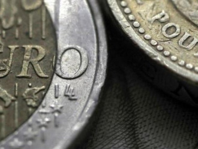 A two Euro coin is pictured next to a one Pound coin in an illustration taken March 16, 2016./REUTERS