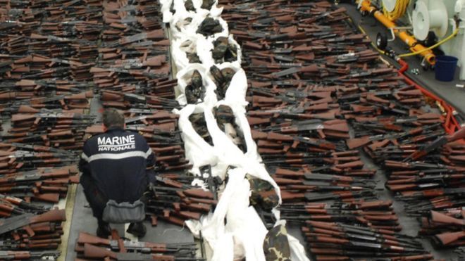 A massive consignment of weapons suspected to be destined for Somalia was yesterday intercepted by the French Navy Frigate FS Provence.The weapons shipment of Russian-made AK-47 guns was in dhow sailing towards Somalia before the weapons’ smugglers were spotted by a French helicopter on routine surveillance in the Northern Indian Ocean.