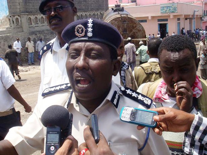 Mogadishu's police Ali Hersi Barre speaks during a press conference in Mogadishu on April 2015
