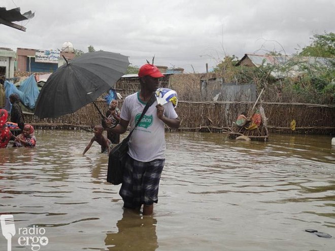 Qali Mire Geedi managed to flee the town and moved to higher ground, five km outside town, with her 10 children. She told Radio Ergo the water carried away 20 of her goats leaving her with only 10. “We don’t have shelter, food or clean water. We slept under a tree,” she said. Qali said her family was depending on support from other displaced families.