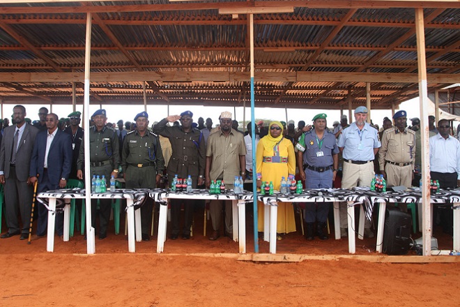 Jubbaland President Ahmed Mohamed Islam, the deputy Special Representative of the AU Commission Chairperson for Somalia (DSRCC) Hon. Lydia Wanyoto, Somali Police Commissioner General Mohammed Sheikh Hamud, AMISOM Police Commissioner Anand Pillay and the UN Police Commissioner Christopher Buik were among dignitaries who attended the passing out ceremony held in Kismaayo.
