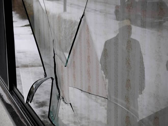 Imam Muhumed Ahmed looks at a window damaged in Dec., 2014, at the Central Minnesota Islamic Center at 390 Fourth Avenue South. (Photo: Dave Schwarz)