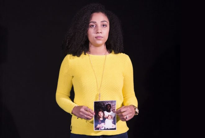 Sakina Millington holds an image of her father and mother when she was a young child. "I have not hugged my father in 7 years. It's hard to have a relationship with someone who is detained and it not take an emotional toll on you." (ANNE-MARIE JACKSON)