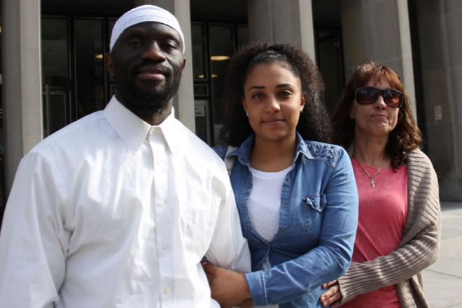 Kashif Ali with his daughter, Sakina Millington, and ex-girlfriend Penny Davidson outside court on Friday, after a judge ordered his release. "I don’t know what to say right now ... I went through a lot," Ali said. (BRENDAN KENNEDY)