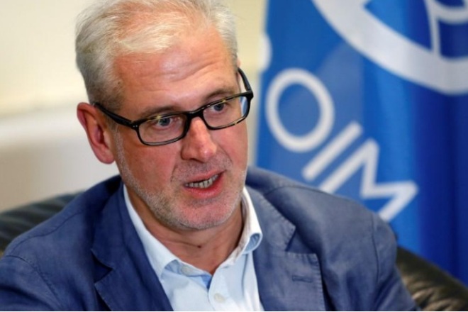 Chief of Mission of the International Organization for Migration (IOM) in Yemen Laurent de Boeck speaks during an interview with Reuters in Brussels, Belgium, August 10, 2017.