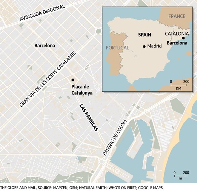 It is also warning Canadians to avoid the Las Ramblas area and says anyone who is already there should stay indoors and follow the instructions of the authorities.
