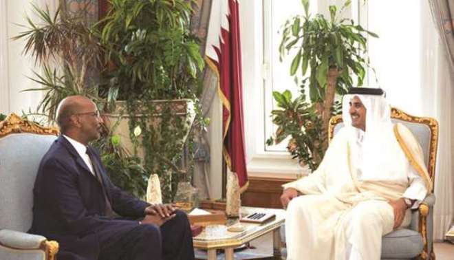 His Highness the Emir Sheikh Tamim bin Hamad al-Thani met the outgoing ambassador of Somalia to Qatar Omar Sheikh Ali Idris at the Emiri Diwan yesterday.