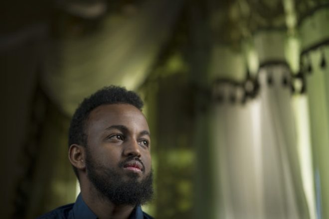 Portrait of Khadar Abdullahi, whose uncle and aunt's resettlement to the US has been delayed repeatedly this year. Khadar was born and grew up in the Kenyan refugee camp where his uncle waits Thursday December 7, 2017 in Minneapolis.