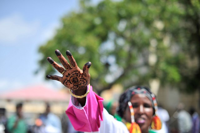 A young Somali singer performs during Eid Al-Fitr celebrations at the Sayidka square in Mogadishu on July 17 2015. Credit: UN Photo/I. Ahmed
