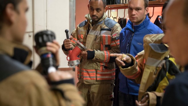 FURSTENWALDE, Germany – In the vehicle bay of Fürstenwalde-Mitte fire station, a young volunteer checks the gears of a large fire engine. Yusuf Abdirahim, a 37-year-old asylum-seeker, knows what he is doing. He has been a member of this brigade for almost as long as he has been in Germany.