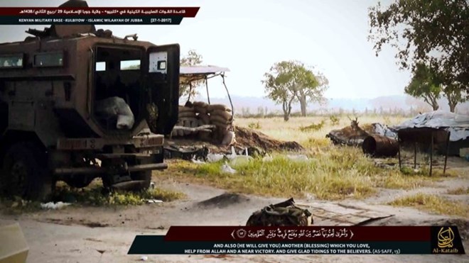 In last week’s assault, Shabaab said its “Saleh al Nabhan Battalion” launched a coordinated, large-scale attack on the base. The attack began with two simultaneous suicide bombings, followed by an assault team breaching the perimeter of the base.