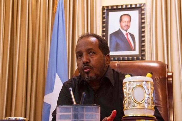 President of the Federal Republic of Somalia Hassan Sheikh Mohamud speaks to journalists during an interview at the Somali State House in Mogadishu on March 02, 2014. Somalia is due to hold its presidential election on February 8, 2017 after numerous delays. FILE PHOTO | ISAAC KASAMANI | NATION MEDIA GROUP