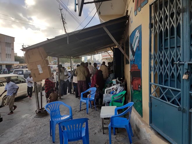 A money-trading stall at Zoobe, Mogadisuh. HOL