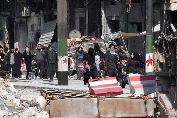 Syrian residents of the newly retaken eastern neighbourhoods of Aleppo walk through the Bab al-Hadid district as they go back home under supervision of the Syrian pro-government forces on December 8, 2016. Pace talks are under way. PHOTO | AFP