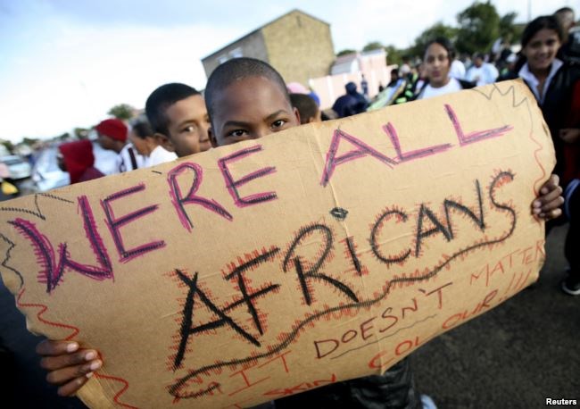 FILE - Migrants in Cape Town's Mannenberg community demonstrate against xenophobia. (UTERS/Mike Hutchings)