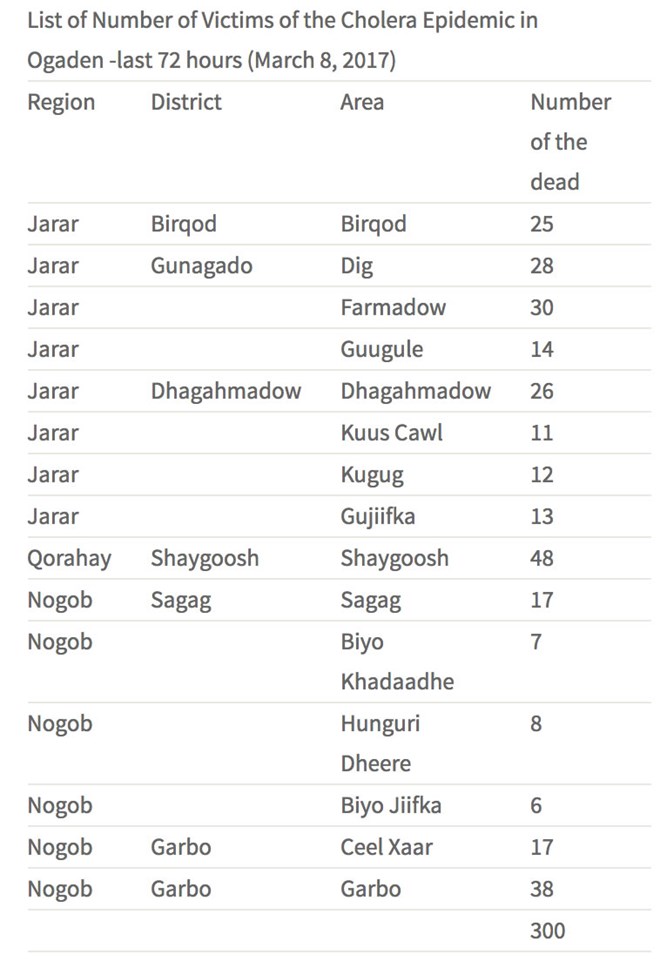 According to the ONLF, 300 people have died in 72 hours due to cholera