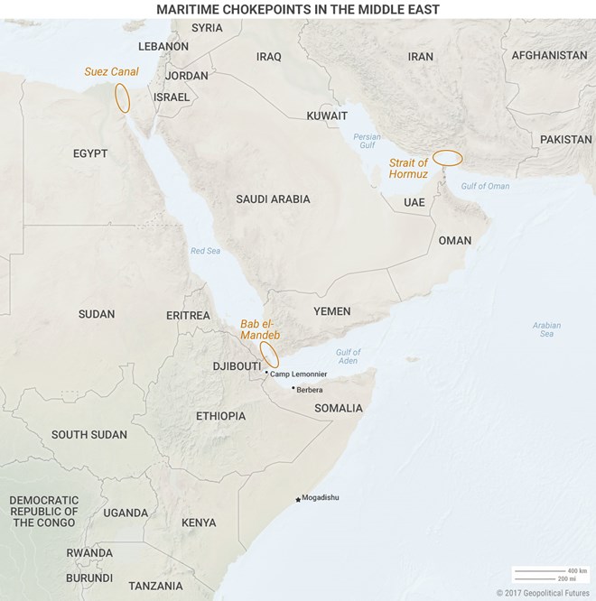 The answer to that question, as is so often the case, starts with geography. Somalia’s northern coast borders the Gulf of Aden, which leads to Bab el-Mandeb, a narrow chokepoint through which all maritime traffic from the Mediterranean Sea to the Indian Ocean must pass. Avoiding this strait would take all goods from the Persian Gulf – including oil – around the entire African continent to reach European and American markets. It is also a valuable staging ground for navies to project power on to the Arabian Peninsula.